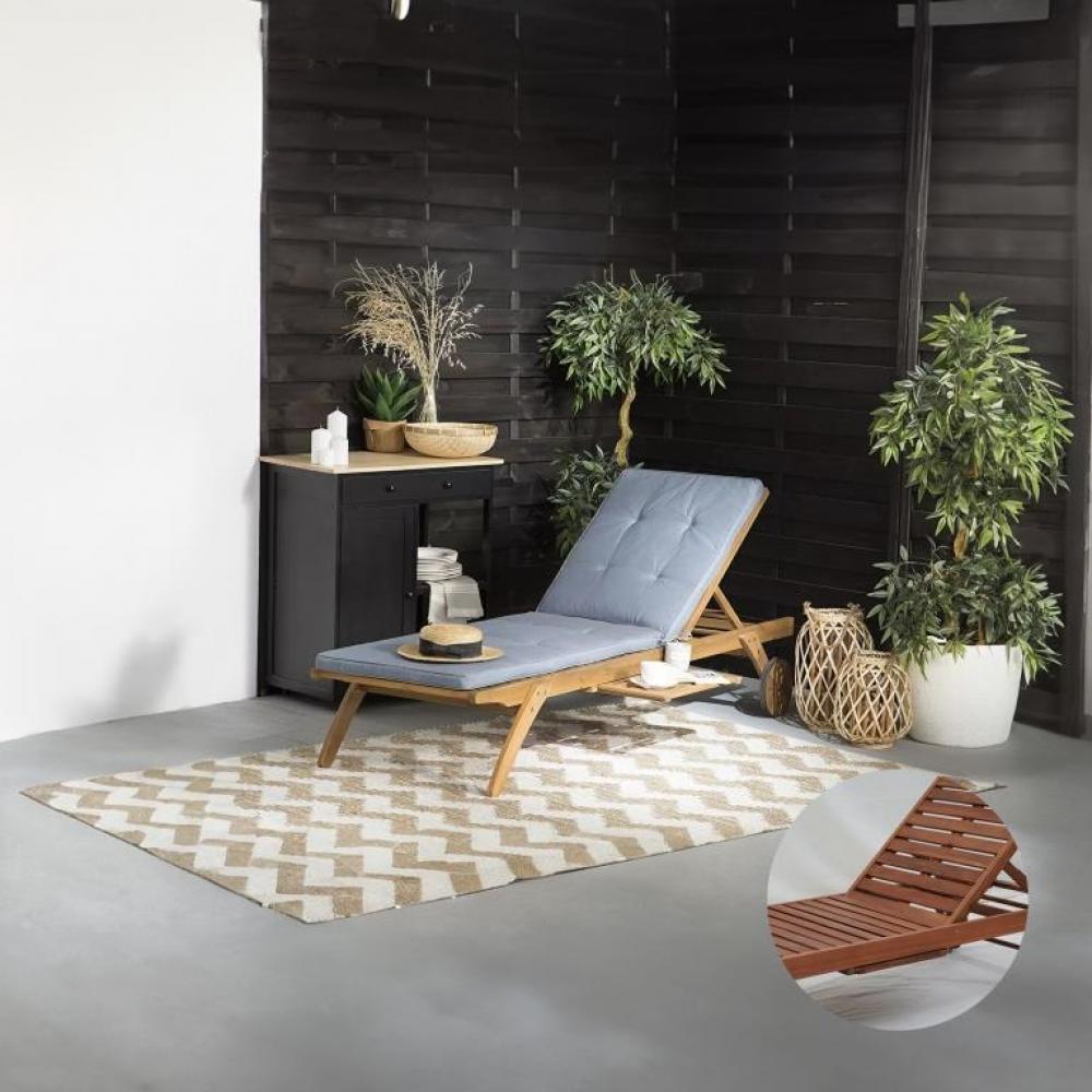 Шезлонг-лежак A37C Grey-Blue от бренда Afina Каркас выполнен из термодерева темного цвета (см. доп. фото), подходит для использования на улице. Матрас в комплекте серо-голубой.